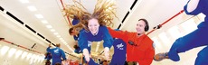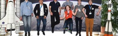Bild: Hier hat sich unsere Fotografin ein besonders originelles Gruppenfoto ausgedacht: Alexander Gerst hebt da mit Jugendlichen ab – fast schwerelos!